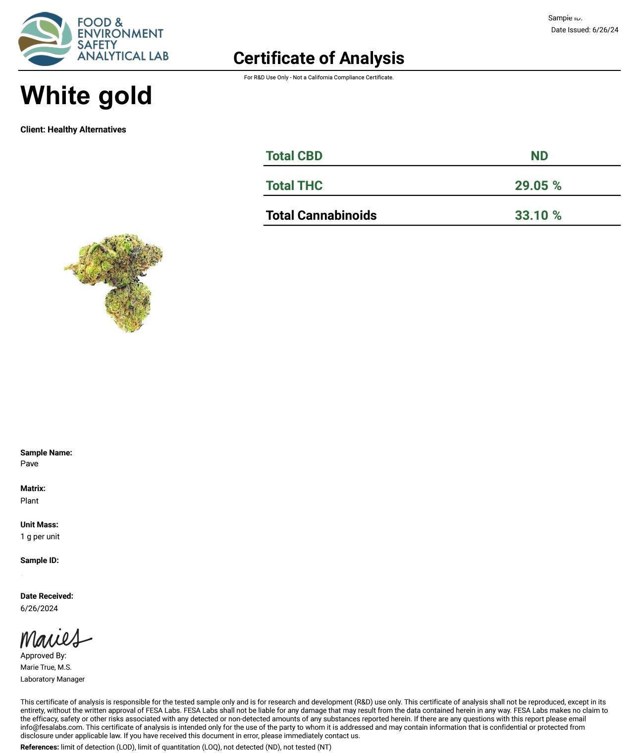 An excellent addition for wholesalers and retailers seeking a high-performance Hybrid that appeals to both recreational and wellness-focused customers. White Gold is all about quality, consistency, and elevated satisfaction.